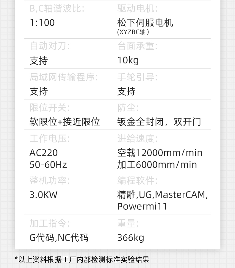 晶研BC搖籃五軸精雕機(jī),2.5KW氣動(dòng)換刀主軸,4把直排刀庫,配備精密滾珠絲桿和直線導(dǎo)軌,運(yùn)行順滑穩(wěn)定。采用進(jìn)口松下伺服電機(jī),BC兩軸諧波減速機(jī),精度高。JYSE5控制系統(tǒng)支持5軸聯(lián)動(dòng),操作簡單。大行程加工區(qū)域,B軸-5°~100°,C軸360°,五軸200×200×200mm三維加工尺寸,滿足復(fù)雜鏤空及五金零件加工需求。