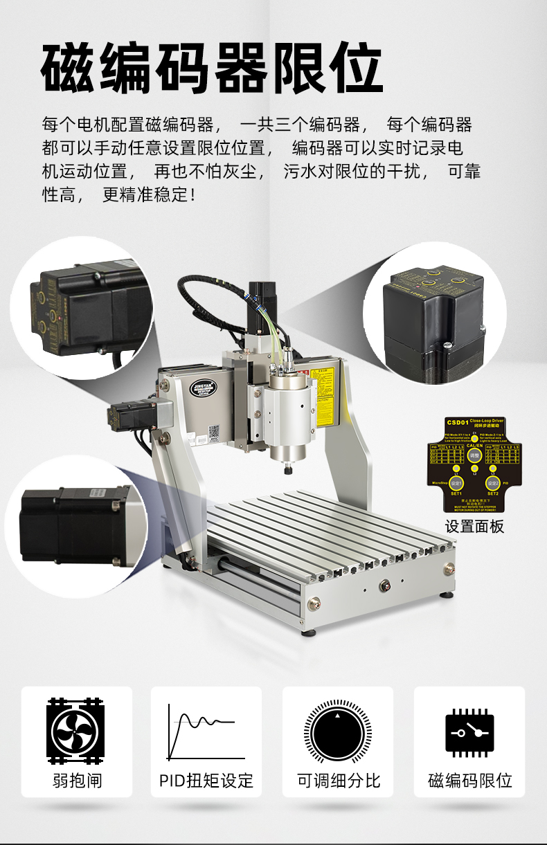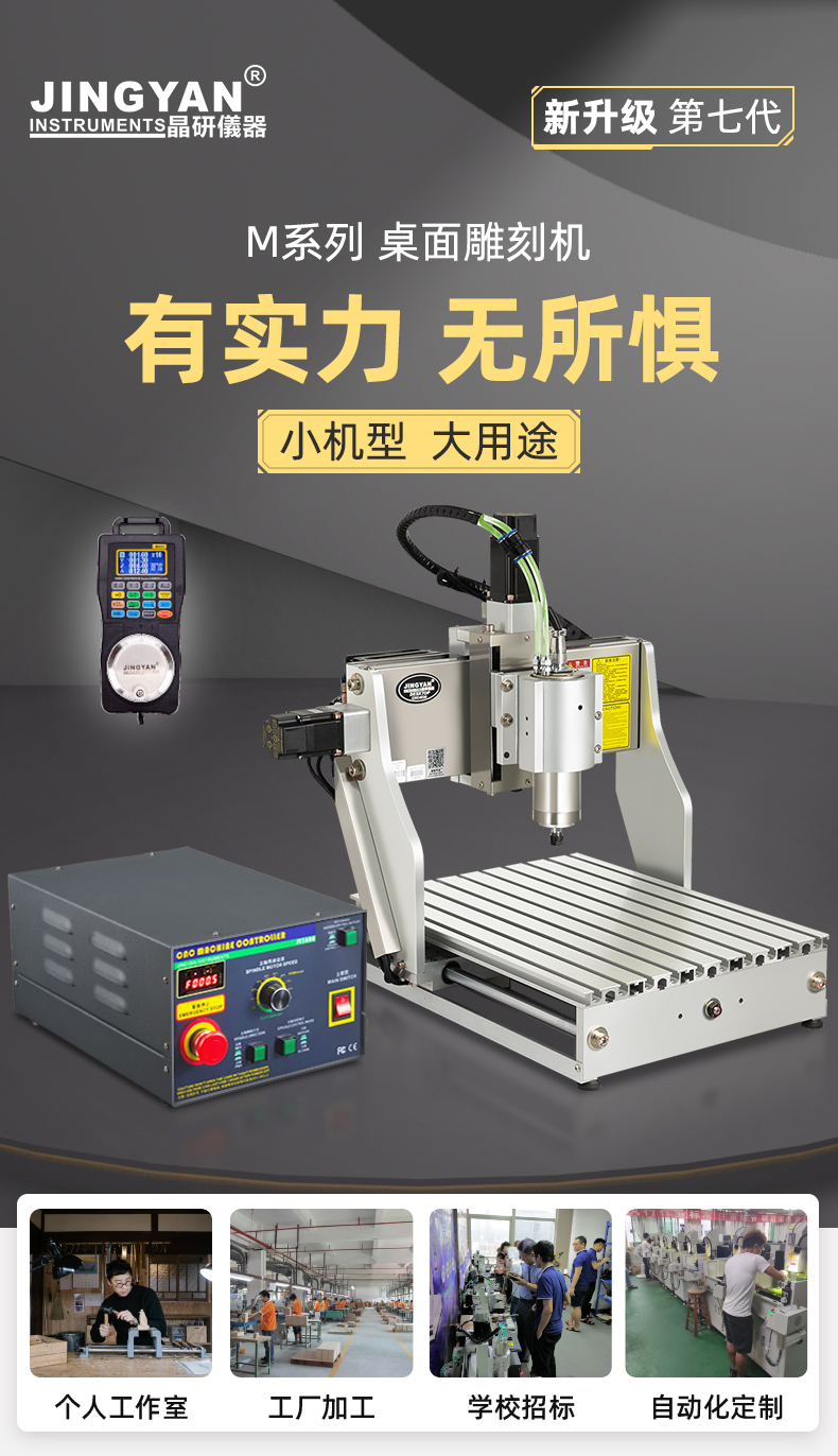 晶研M系列桌面雕刻機提供多種功率選擇,適應不同硬度材料加工需求。其高精度編碼限位系統(tǒng)、高速閉環(huán)電機和智能驅動卡,確保了加工的精度、速度和節(jié)能效果。此外,晶智牛云系統(tǒng)和手機小程序為用戶提供了便捷的教學和售后服務,使其成為工業(yè)應用的理想選擇。