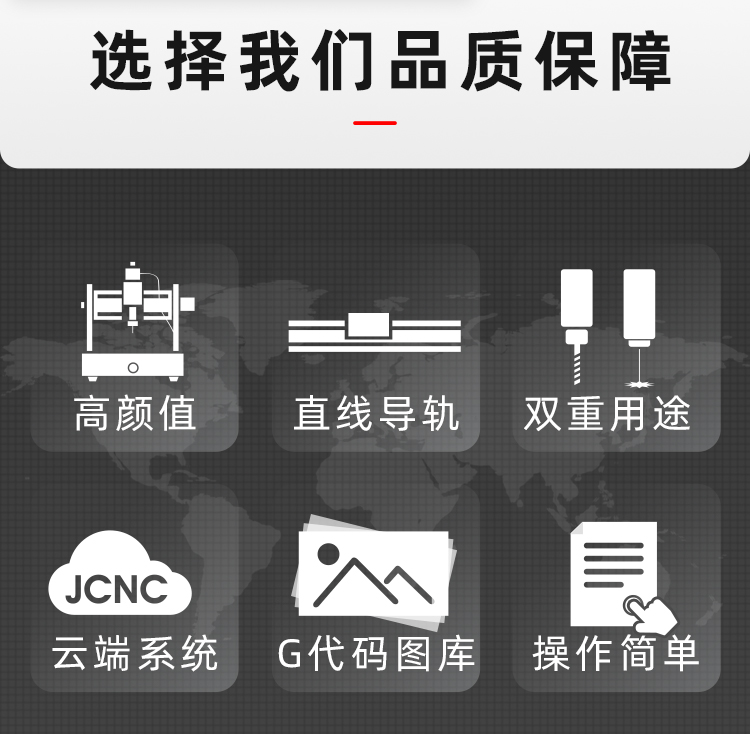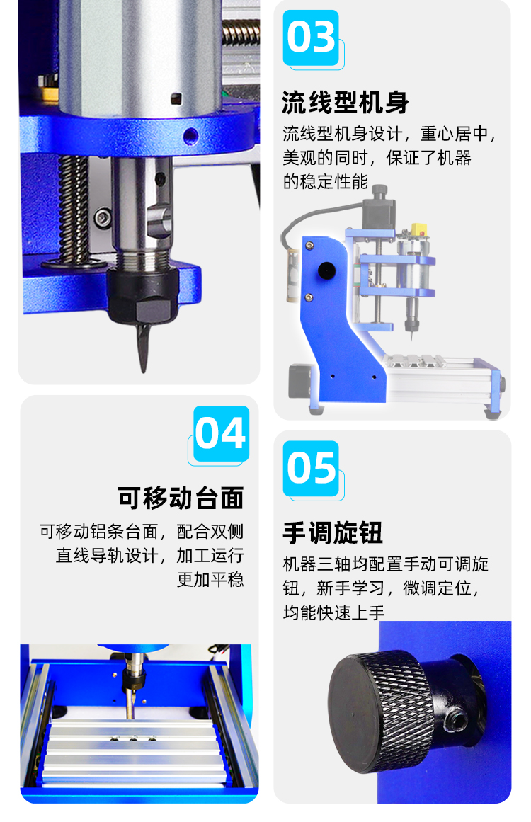 序,方便新手客戶快速上手,圖庫(kù)和代碼程序會(huì)不定時(shí)更新,為大家提供更優(yōu)質(zhì)便捷的服務(wù)體驗(yàn)。支持連接脫機(jī)控制手柄,可直插內(nèi)存卡讀取程序,脫機(jī)雕刻運(yùn)行,同時(shí),對(duì)刀加工,微調(diào)定位,方便快捷,新手加工強(qiáng)烈推薦選配哦!