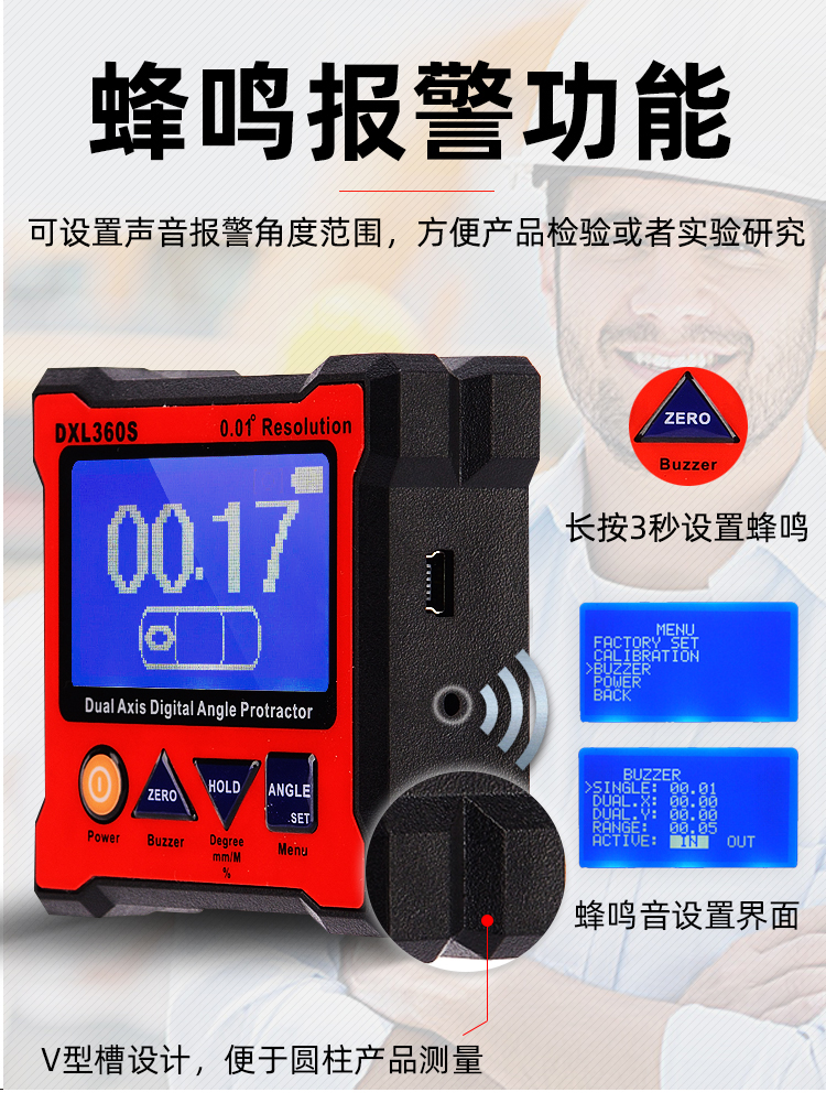 對于批量檢測場景,或者實驗場景,DXL360S傾角儀可以設(shè)置多區(qū)域報警功能或者單角度報警功能,便于我們通過報警聲就可以快速篩查有問題的傾斜角度,靈活可控!